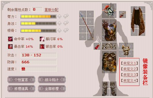 5) 当人物因洗点导致不符合镜像套装的装备条件时,将读取不了装备属性
